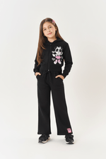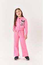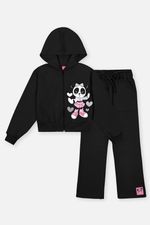 Conjunto moderno e cheio de estilo, perfeito para looks descomplicados e cheios de atitude. A jaqueta boxy em moletom felpado possui estampa frontal com foil, que adiciona um toque de brilho, além de estampa nas costas que completa o visual com muito charme. O fechamento em zíper oferece praticidade, enquanto os punhos e a barra em ribana garantem um ajuste confortável e aconchegante. A calça, também em moletom felpado, vem com elástico e cadarço decorativo no cós para um ajuste ideal, além de bolsos frontais que combinam funcionalidade e estilo. A etiqueta decorativa próxima da bainha finaliza o look com um toque sofisticado. Ideal para criar looks casuais e cheios de personalidade. Coleção Inverno 2025. A modelo veste tamanho 06 e possui 1,22cm de altura.