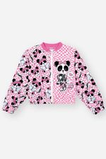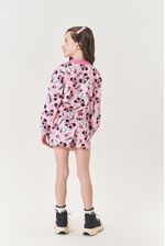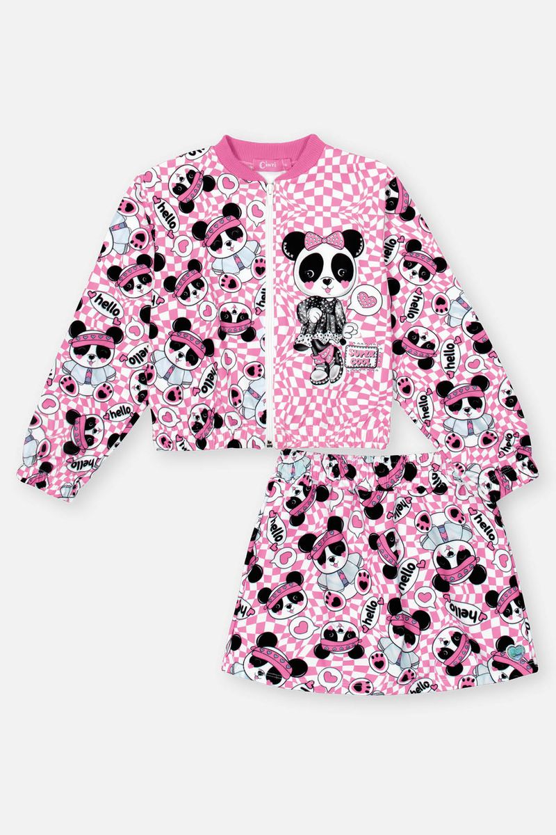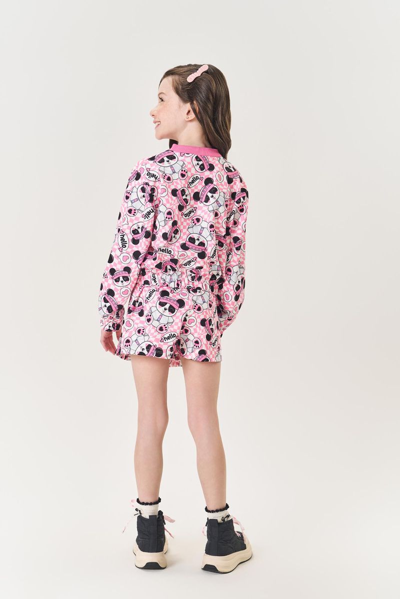 Conjunto superestiloso e confortável, composto por jaqueta bomber boxy e short-saia, perfeito para looks modernos e cheios de personalidade. A jaqueta é feita em suplex power felpado, com estampa total e detalhes em strass frontal, adicionando brilho e charme. O fechamento em zíper e os elásticos nos punhos e na barra garantem ajuste perfeito e conforto. O short-saia, também em suplex power felpado, possui elástico no cós para maior comodidade e estampa total que complementa o visual. A etiqueta decorativa próxima da bainha traz um toque de estilo adicional. Um conjunto ideal para as pequenas que adoram estar na moda com muito conforto e sofisticação. Coleção Inverno 2025. A modelo veste tamanho 06 e possui 1,22cm de altura.