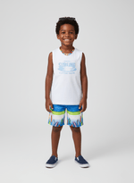 O conjunto para menino, disponível nos tamanhos 01 ao 08, é a escolha perfeita para os dias quentes e cheios de brincadeira. Composto por regata e bermuda, o look combina conforto, estilo e uma vibe bem praiana. Disponível nas cores branco, verde e azul marinho.