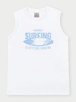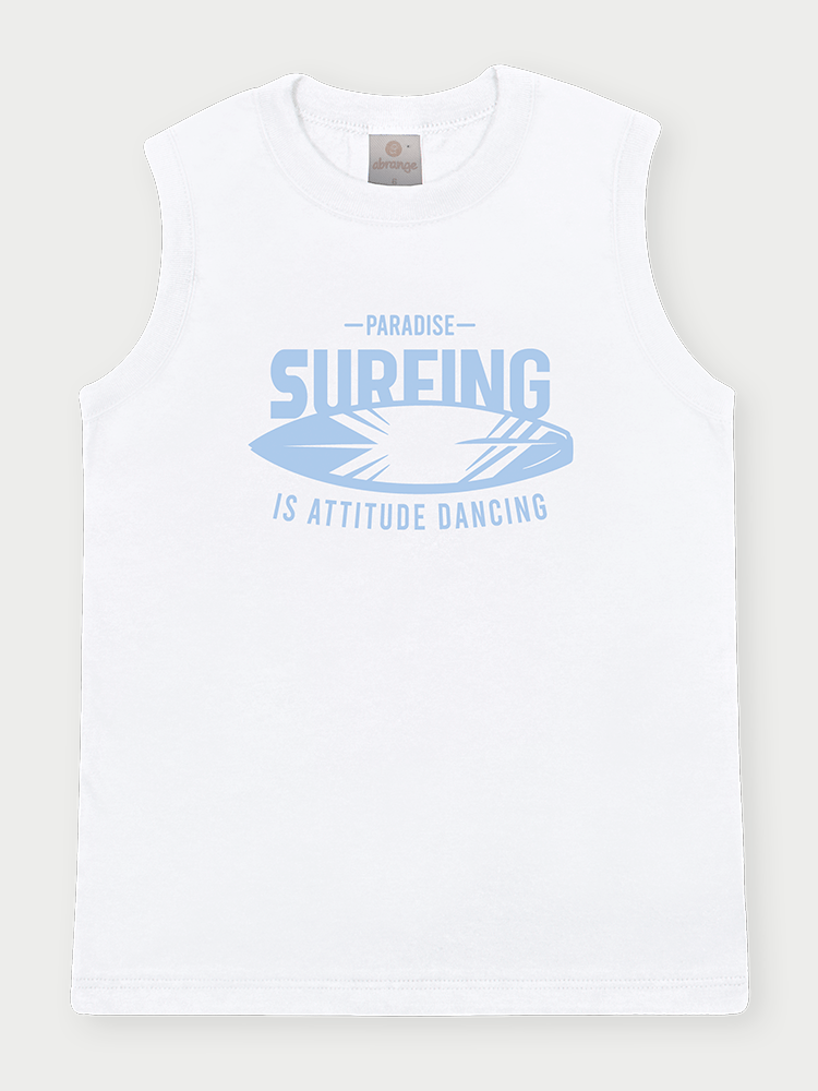 A regata é confeccionada em meia malha de toque leve, macio e respirável, ideal para proporcionar bem-estar durante todo o dia. O decote redondo e as cavas das mangas recebem aplicação de friso em ribana — com destaque para o acabamento duplo nas cavas, que oferece mais firmeza e durabilidade ao visual. A estampa frontal complementa a peça com um toque moderno e divertido.