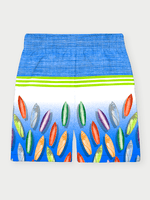 Já a bermuda é feita em tactel surf, um tecido leve, com toque liso e suave, perfeito para garantir liberdade de movimentos e sensação de frescor. Além disso, o tactel possui secagem rápida, ideal para dias de passeio ao ar livre ou momentos à beira da água. A estampa de pranchas de surf em sublimação reforça o clima descontraído e litorâneo do conjunto, enquanto o elástico na cintura garante um ajuste confortável e prático.