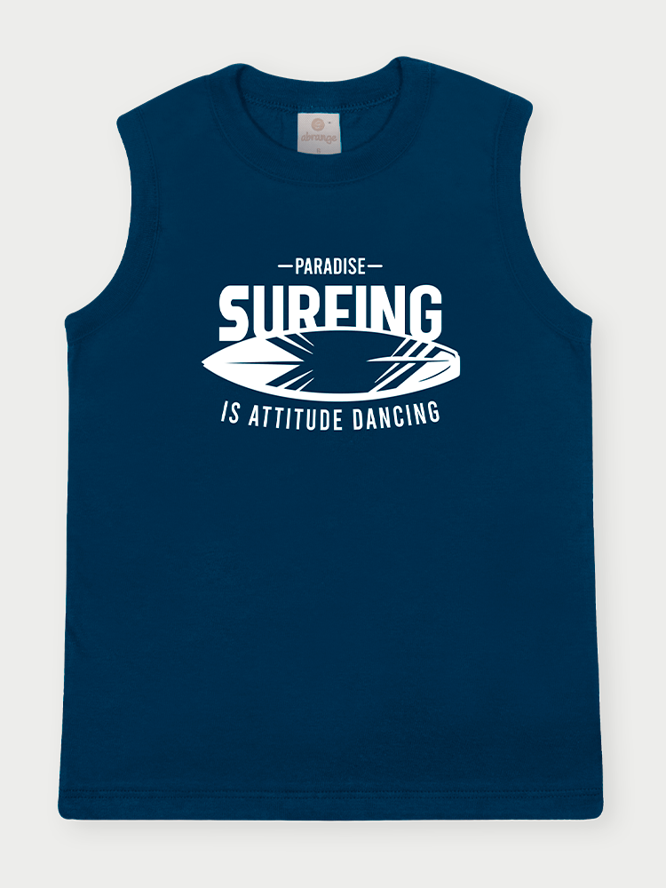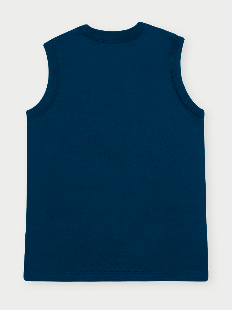 A regata é confeccionada em meia malha de toque leve, macio e respirável, ideal para proporcionar bem-estar durante todo o dia. O decote redondo e as cavas das mangas recebem aplicação de friso em ribana — com destaque para o acabamento duplo nas cavas, que oferece mais firmeza e durabilidade ao visual. A estampa frontal complementa a peça com um toque moderno e divertido.