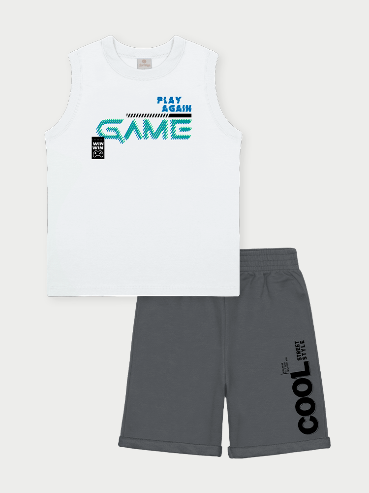 Este conjunto para menino, do tamanho 04 ao 14, oferece conforto e estilo em cada detalhe, com tecidos pensados para acompanhar a rotina ativa dos pequenos.