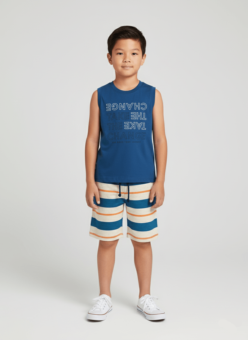 Este conjunto para menino, do tamanho 04 ao 14, une conforto e estilo com tecidos que garantem leveza e praticidade para o dia a dia.