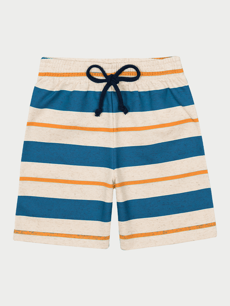 A bermuda em moletom linho tem um toque levemente texturizado, com aparência natural e confortável. É um tecido encorpado na medida certa, fresco e agradável ao toque, que confere um visual mais sofisticado sem perder o conforto. O elástico na cintura garante um ajuste confortável, e o cadarço decorativo complementa o estilo. A estampa listrada em sublimação traz um toque visual descolado e moderno, ideal para looks casuais cheios de personalidade.