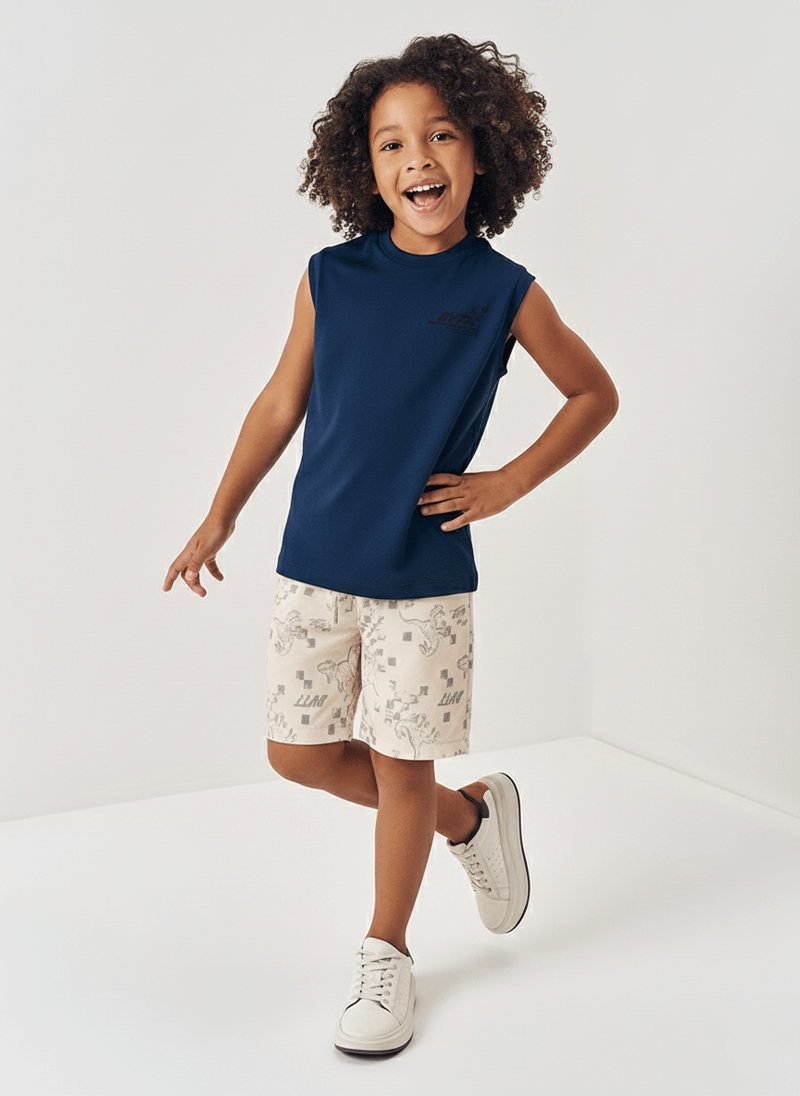 Esse conjunto une conforto e praticidade em uma proposta cheia de estilo, tornando-se a escolha perfeita para compor o guarda-roupa infantil em ocasiões casuais de verão.