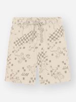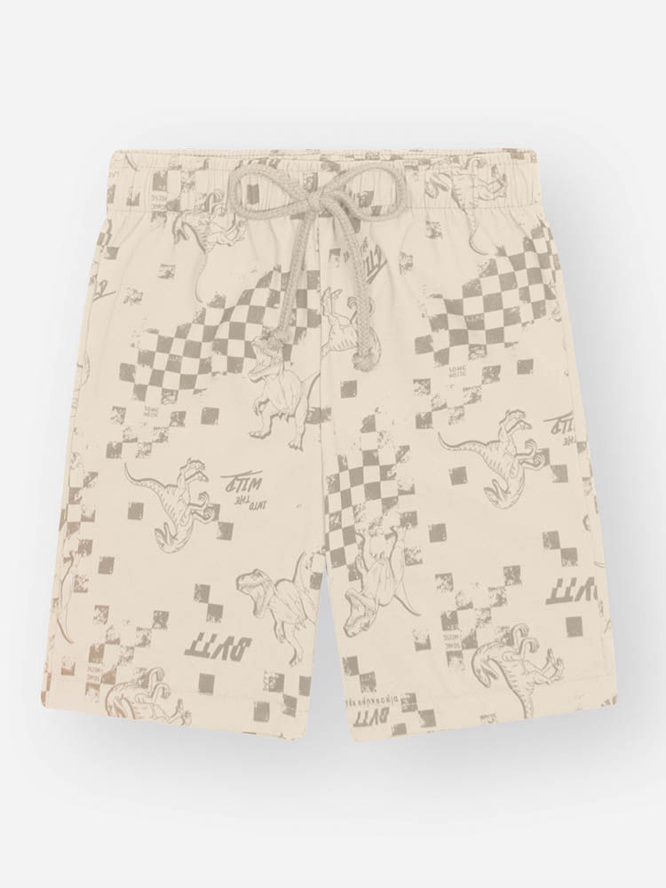 A bermuda conta com estampa corrida moderna de efeito xadrez com dinossauros, que traz personalidade e diversão ao look. O cós com elástico e cadarço funcional garante ajuste perfeito ao corpo, ideal para brincadeiras ao ar livre, passeios em família e momentos de lazer com estilo.