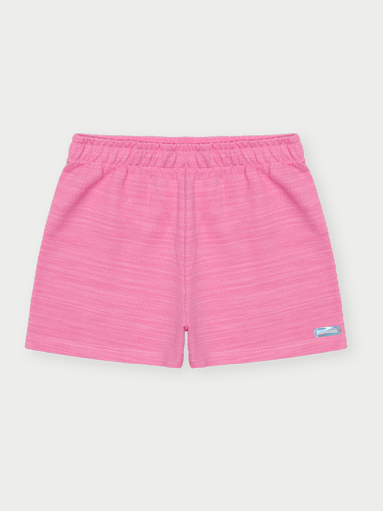 O short em moletinho atoalhado tem toque macio, leve e com textura suave ao toque, ideal para dias mais quentes, pois é confortável e não esquenta demais. O elástico na cintura garante ajuste ideal e liberdade de movimento, enquanto a etiqueta decorativa próximo à barra dá um toque final fofo e moderno ao conjunto.
