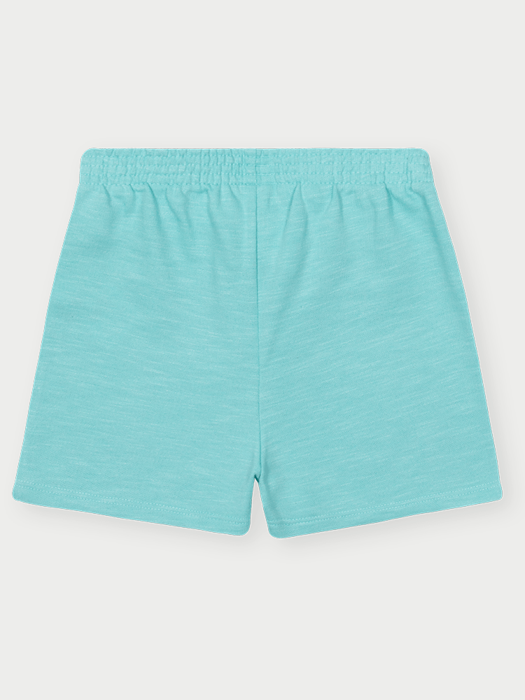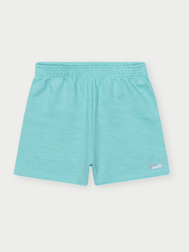 O short em moletom molinê tem toque macio com leve textura mesclada, oferecendo um visual moderno e sensação aconchegante ao vestir. O elástico na cintura permite liberdade de movimento e facilidade na hora de vestir, e a etiqueta decorativa na barra adiciona um charme especial à peça.