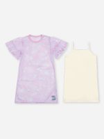 O vestido interno é confeccionado em 100% algodão, tecido leve e respirável, que proporciona toque macio na pele e conforto durante todo o dia. Sua maleabilidade e elasticidade natural permitem liberdade de movimentos, ideal para acompanhar as brincadeiras das crianças.