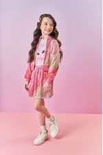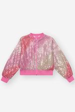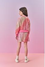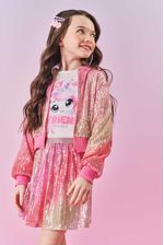 Jaqueta bomber boxy em paetê degradê, perfeita para dar um toque moderno e brilhante ao visual infantil. Com fechamento em zíper, a peça conta com forro total em tecido Aspen, garantindo conforto e suavidade. Detalhe especial para a plaquinha metalizada decorativa na barra, que adiciona um charme extra. A barra e os punhos em ribana proporcionam um ajuste confortável e estilo único. Ideal para compor looks cheios de personalidade, combinando com