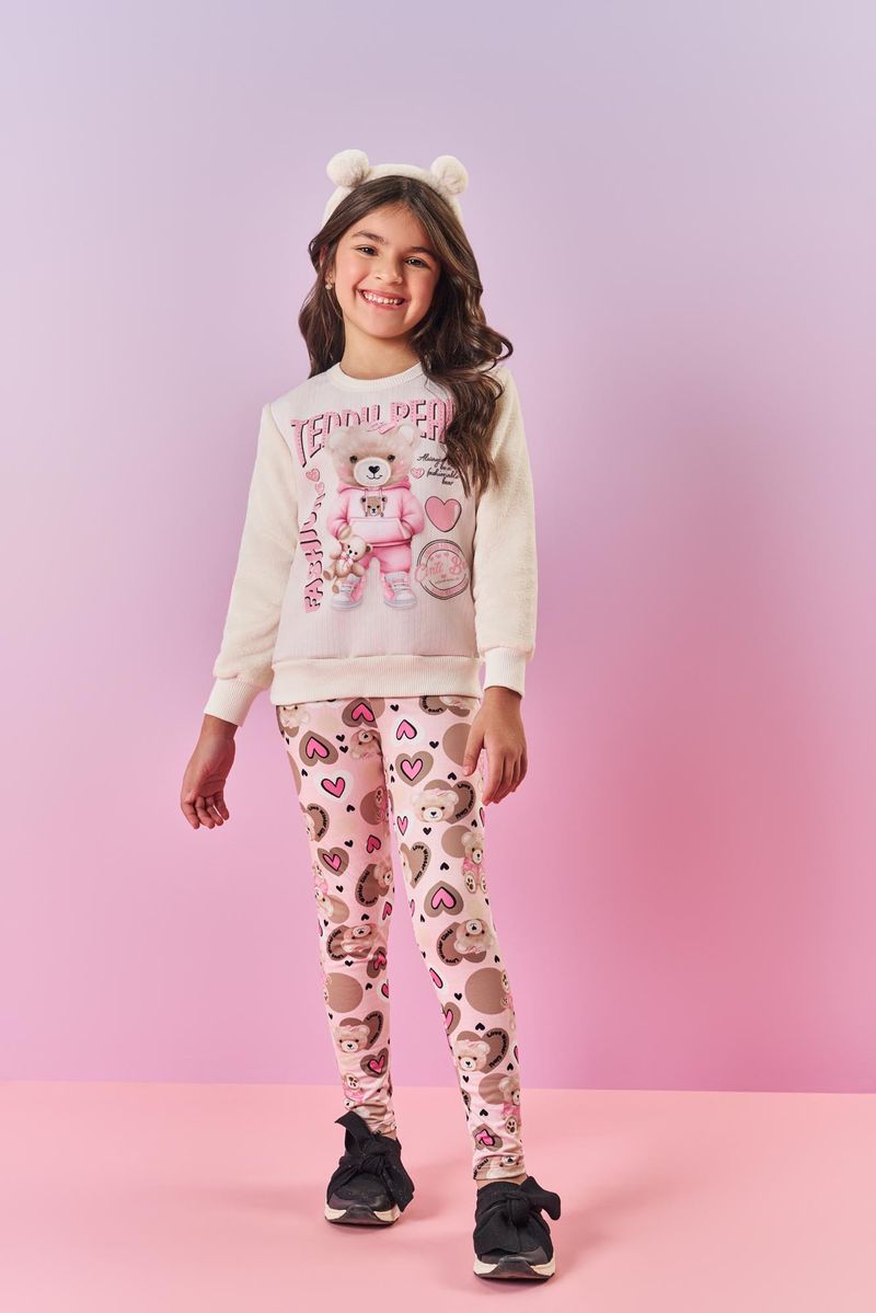Legging Infantil Menina Total Print Ursinho Rosa Mundo Cinti