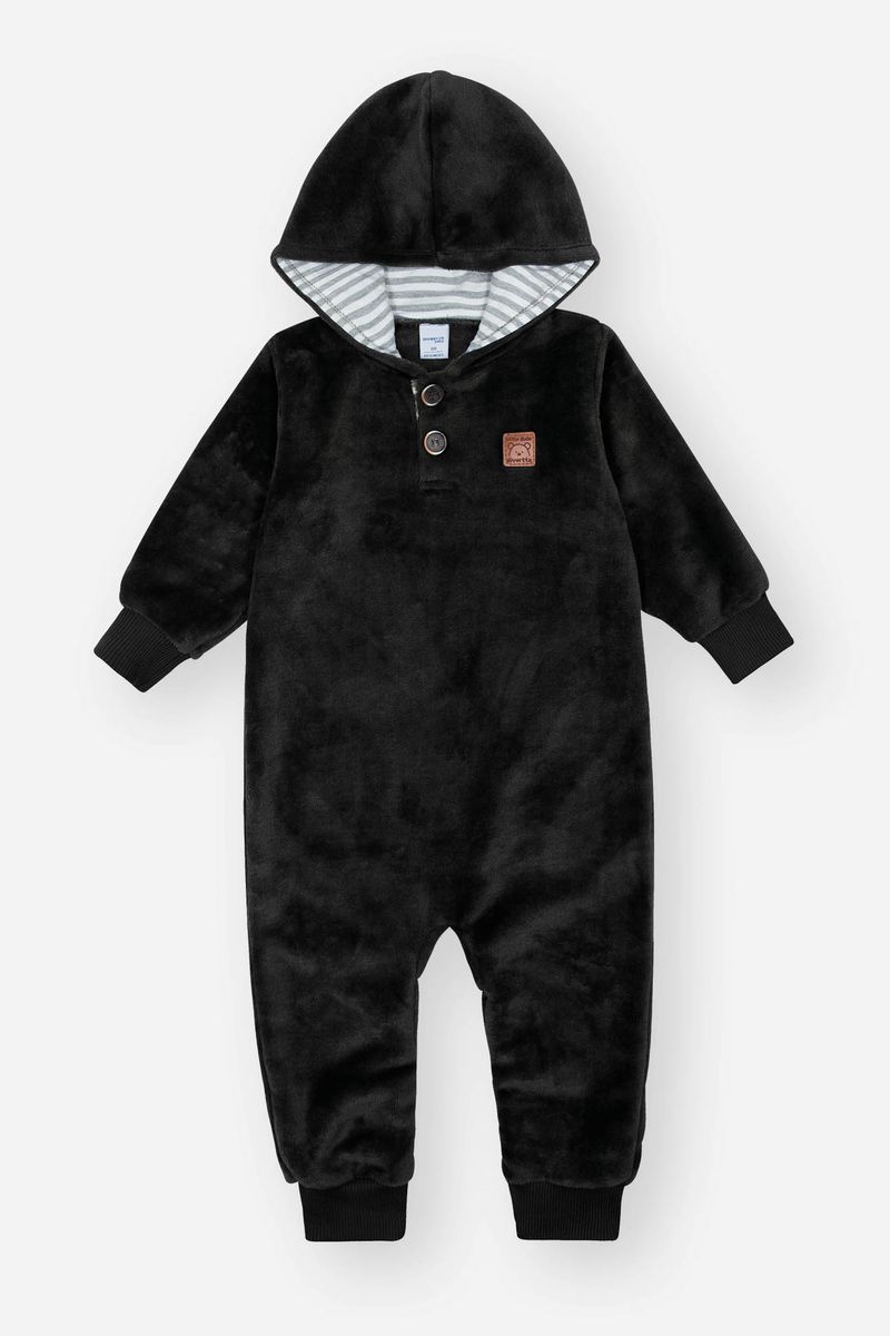 O macacão para bebê em pelo fleece é perfeito para manter o pequeno quentinho e estiloso. Com capuz forrado em meia malha listrada, o item traz um toque especial e confortável. O peitilho com botões rajados e a etiqueta decorativa adicionam detalhes charmosos à peça, enquanto os punhos das mangas e as barras com ribana 3 cabos garantem um ajuste perfeito e aconchegante. A abertura no entrepernas com friso e botões de pressão facilita a troca de fraldas. Este macacão é de edição limitada, tornando-o uma escolha única para os momentos mais especiais do bebê.