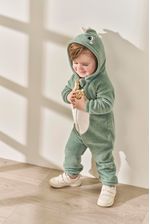 Feita em pelo fleece ultra macio, essa fantasia envolve o bebê em um abraço quentinho, garantindo toque suave na pele e proteção contra o frio. O recorte frontal imitando a barriguinha do dinossauro, também em pelo fleece, traz um detalhe lúdico que deixa a peça ainda mais encantadora.