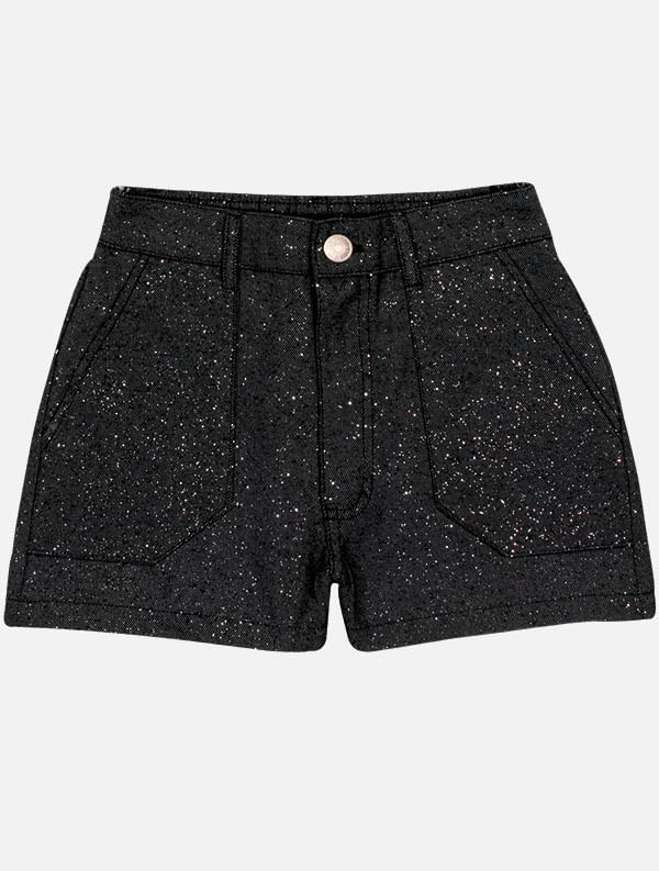 Short em sarja glitter é a escolha ideal para quem deseja um toque de brilho e sofisticação no visual. Com elástico no cós apenas nas costas, garante um ajuste confortável e seguro, enquanto o cós com botão e presilhas proporciona um acabamento elegante. A braguilha e os bolsos frontais adicionam funcionalidade, tornando a peça prática e estilosa. Combine com