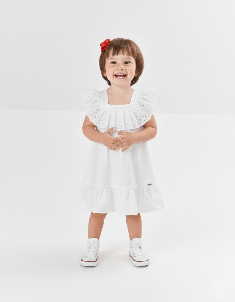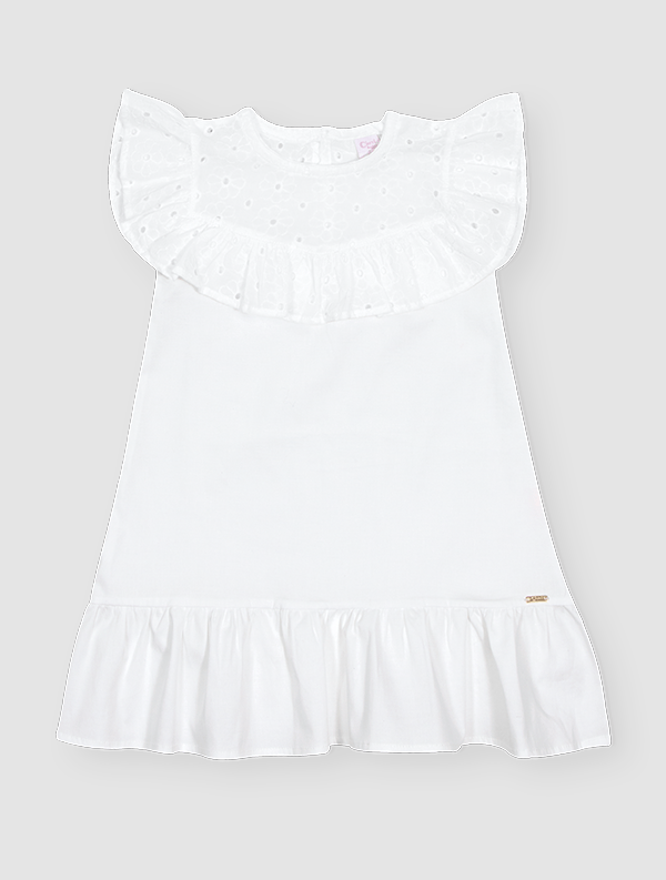 Vestido em tricoline com elastano, proporcionando conforto e ajuste perfeito. O busto em laise floral com babado adiciona um toque delicado e romântico à peça. O fechamento nas costas com botão facilita o vestir, enquanto a plaquinha decorativa acima do recorte da barra completa o look com um detalhe elegante. Ideal para criar visuais sofisticados e femininos, este vestido é perfeito para ocasiões especiais, unindo charme e estilo em cada detalhe. Alto Verão 2024/2025.
