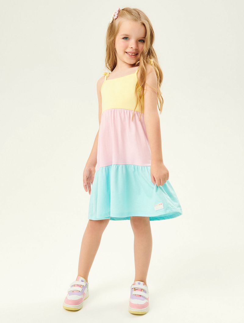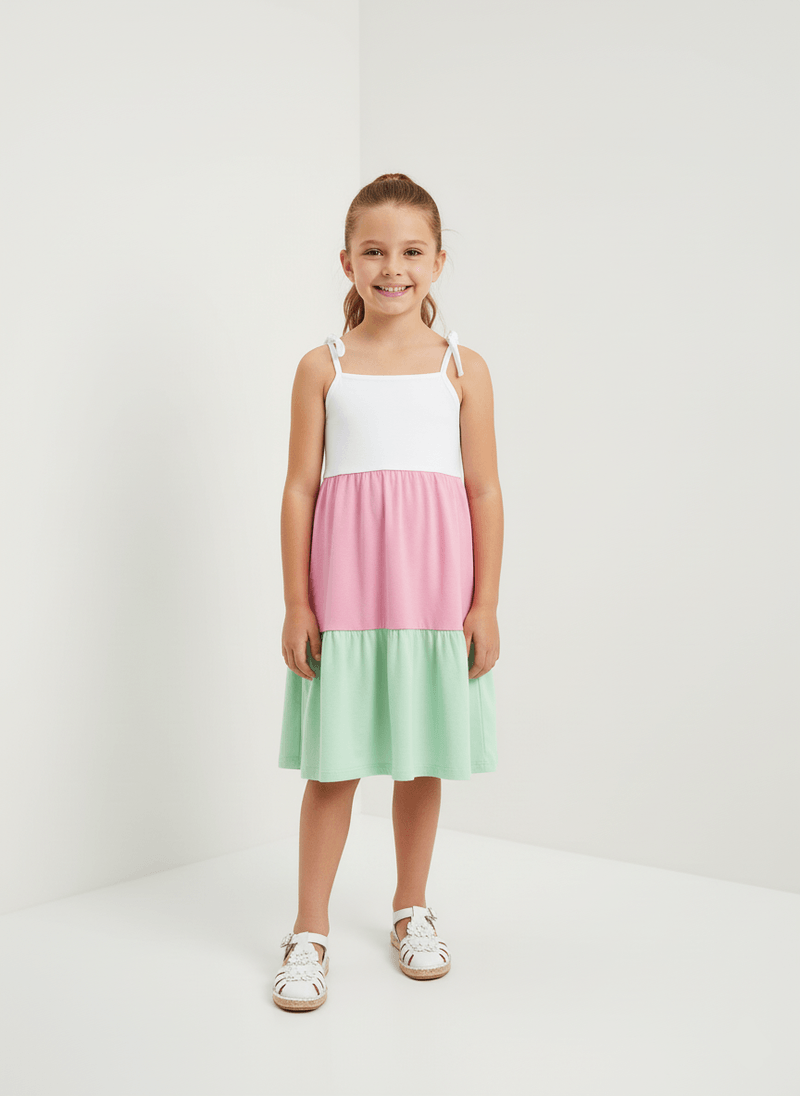 MeninasVestidosVestido Três Marias Branco, Rosa E Verde Abrange