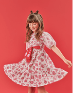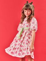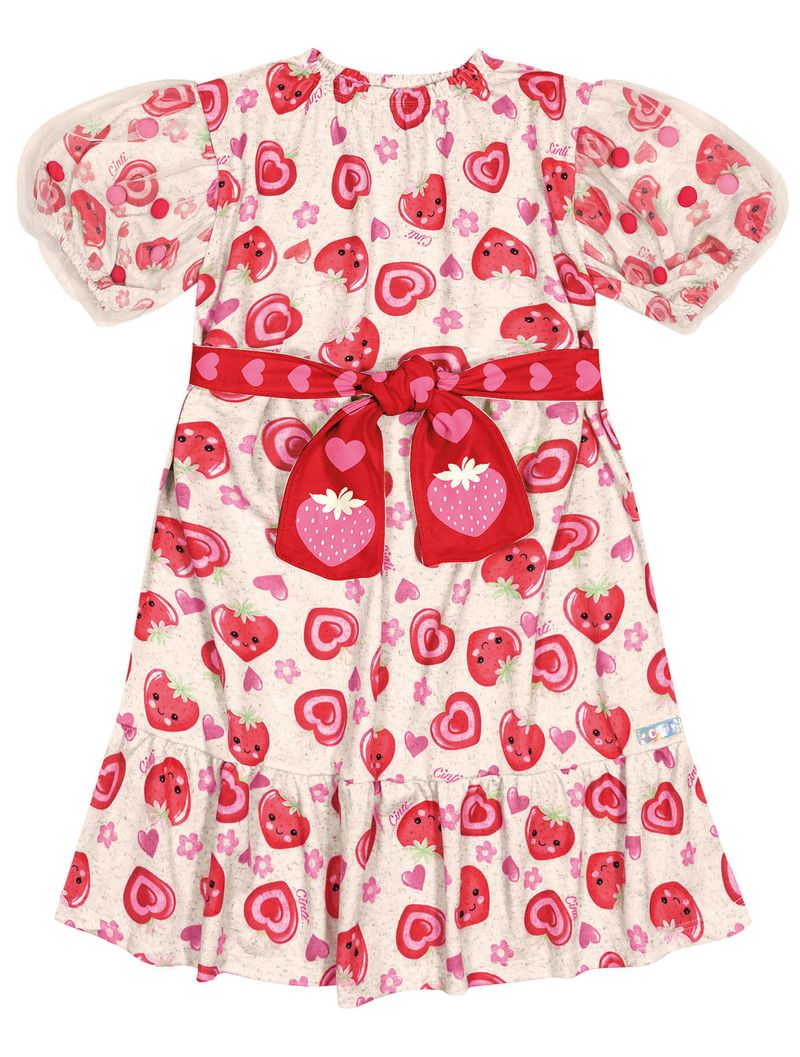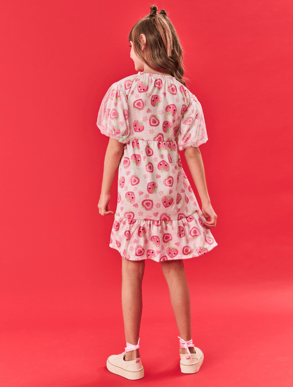 Explore a doçura e o charme do nosso vestido em suedine linho, ideal para meninas que adoram estilo e conforto. Este vestido apresenta um elástico no decote para ajuste perfeito, e suas mangas são delicadamente decoradas com tule e pompons soltos, adicionando um toque de delicadeza e diversão. Uma faixa na cintura permite fazer um laço gracioso, complementado por uma estampa encantadora com cheirinho de morango. A estampa total de morangos adiciona um toque lúdico ao visual. Uma etiqueta decorativa acima da barra finaliza o design. Perfeito para ocasiões especiais ou para um passeio casual, este vestido é ideal para combinar com sapatilhas ou sandálias, proporcionando um visual encantador e cheio de personalidade. Primavera 24. A modelo veste tamanho 8 e possui 1,31 cm de altura.