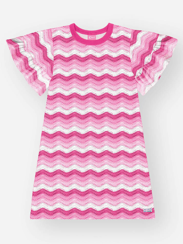 Vestido infantil em New Strech (96% poliéster e 4% elastano), tecido leve, macio ao toque e com elasticidade que garante liberdade de movimentos e muito conforto no dia a dia. Sua maleabilidade proporciona caimento perfeito, acompanhando as brincadeiras das pequenas com delicadeza.