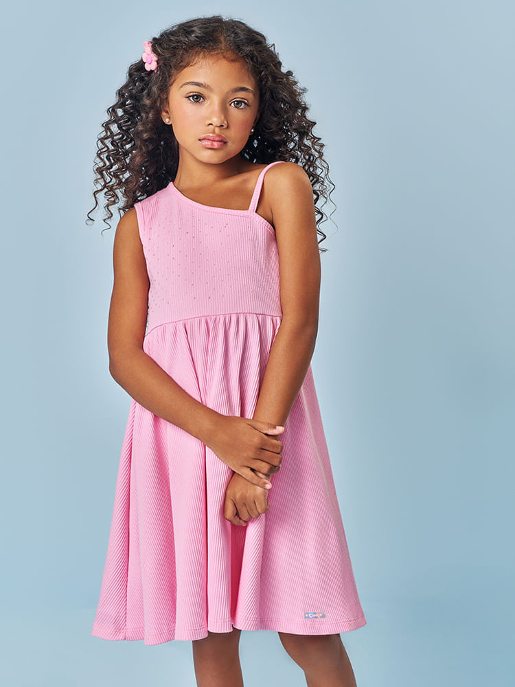 O vestido infantil em canelado glow é perfeito para unir conforto e estilo em todas as ocasiões. Confeccionado em 92% algodão e 8% elastano, possui toque macio na pele, ótima maleabilidade e elasticidade que garantem liberdade de movimentos para as meninas.