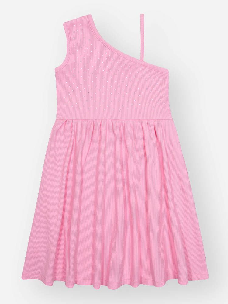 Com modelagem rodada e franzido delicado, o vestido traz detalhe de strass furta-cor aplicado na parte superior, proporcionando brilho sutil e moderno. A assimetria de uma alça fina deixa o visual ainda mais fashion e diferenciado.