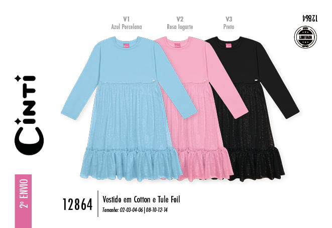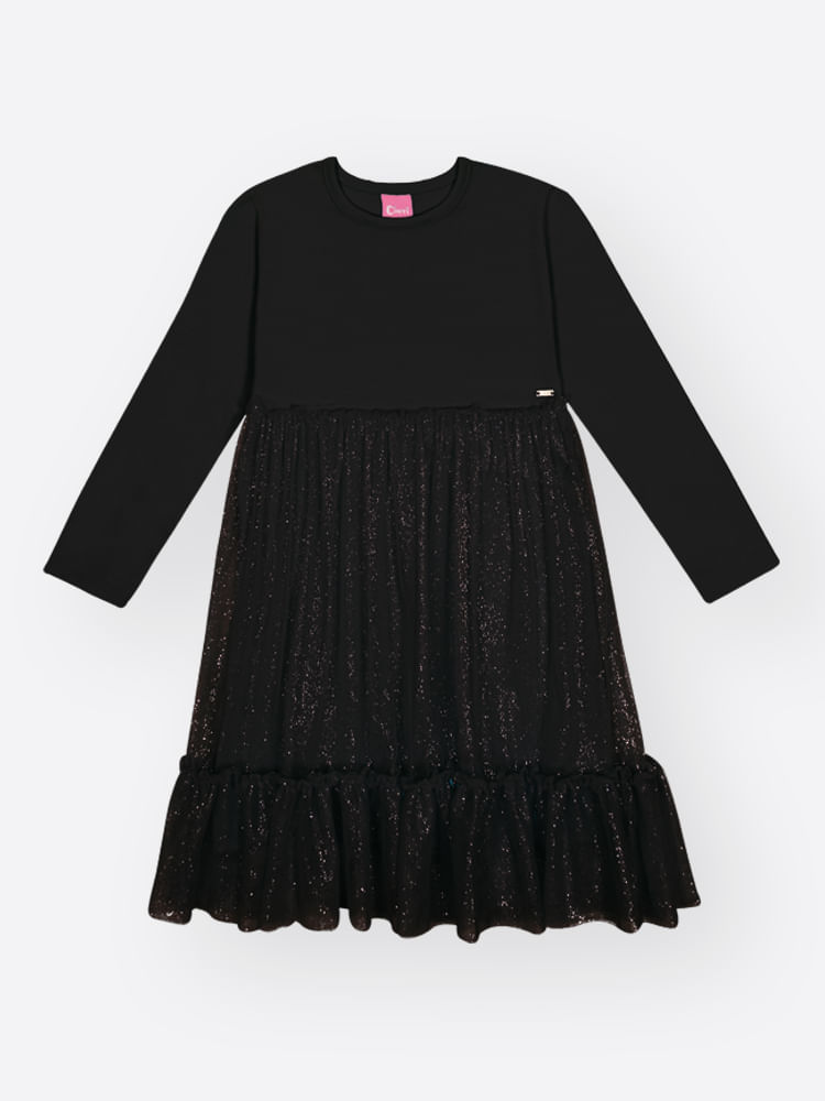 Tamanho:Vestido Menina em Cotton e Tule Fóil Mundo Cinti PRETO 02