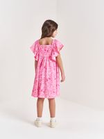 Com modelagem rodada e detalhes que valorizam o design, o vestido combina delicadeza e modernidade, tornando-se uma peça versátil para diversas ocasiões — desde passeios em família até momentos de lazer no dia a dia.
