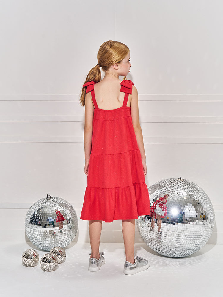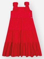 O vestido infantil em moletinho waffle Vermelho Marte (Ref. 24520) é puro charme e conforto! Com modelagem rodada e tecido encorpado de toque macio, esse vestido traz movimento e leveza ao look das meninas. O destaque fica por conta das alças com laços delicados, que proporcionam um visual romântico e moderno ao mesmo tempo.